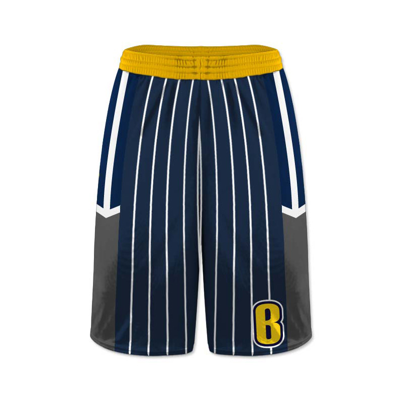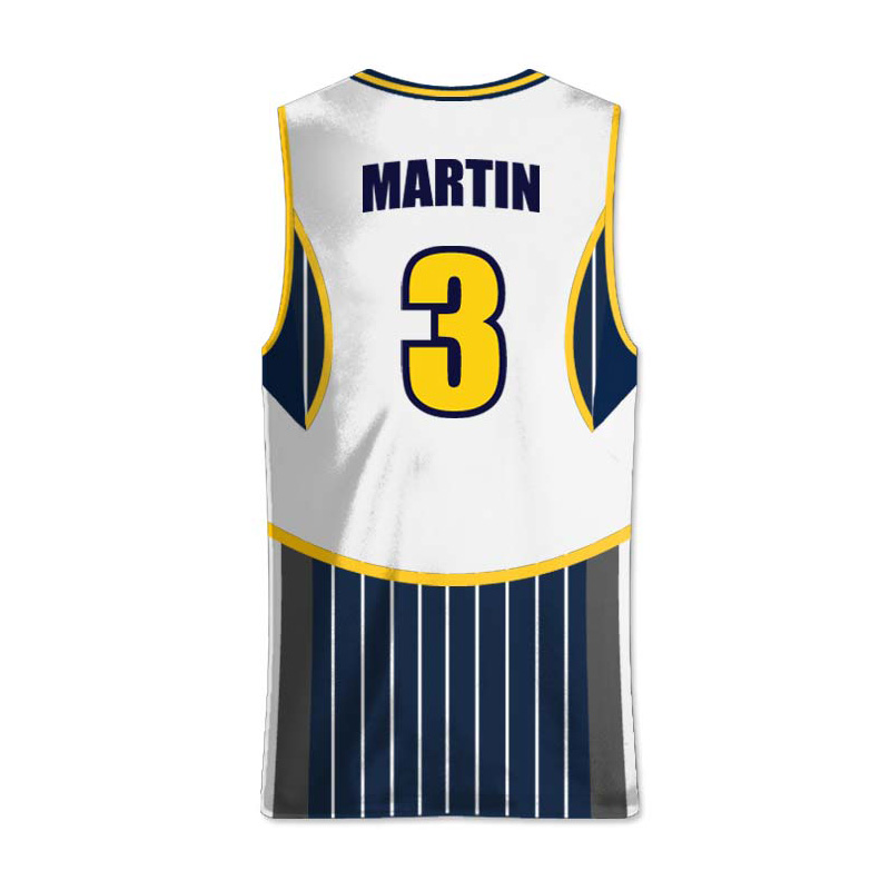 Classic navy and yellow pinstripe basketball uniform with a retro vibe. The mesh fabric ensures excellent ventilation, making it perfect for both indoor and outdoor basketball sessions. Durable print and fade-resistant colors ensure long lasting wear.
