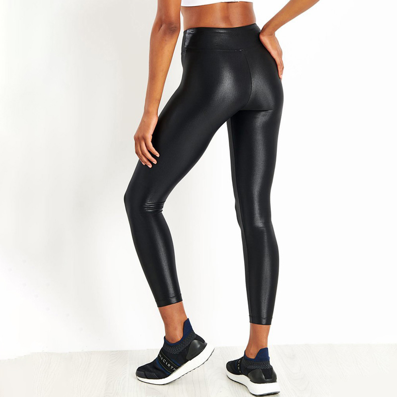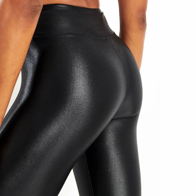 These black faux leather-look leggings have a sleek, glossy finish that gives a premium and bold appearance. Designed to fit like a second skin, they provide maximum flexibility and comfort while maintaining a high-waist silhouette that enhances your figure. Perfect for both fitness and fashion, these leggings can easily transition from gym wear to a night-out look with sneakers or heels.