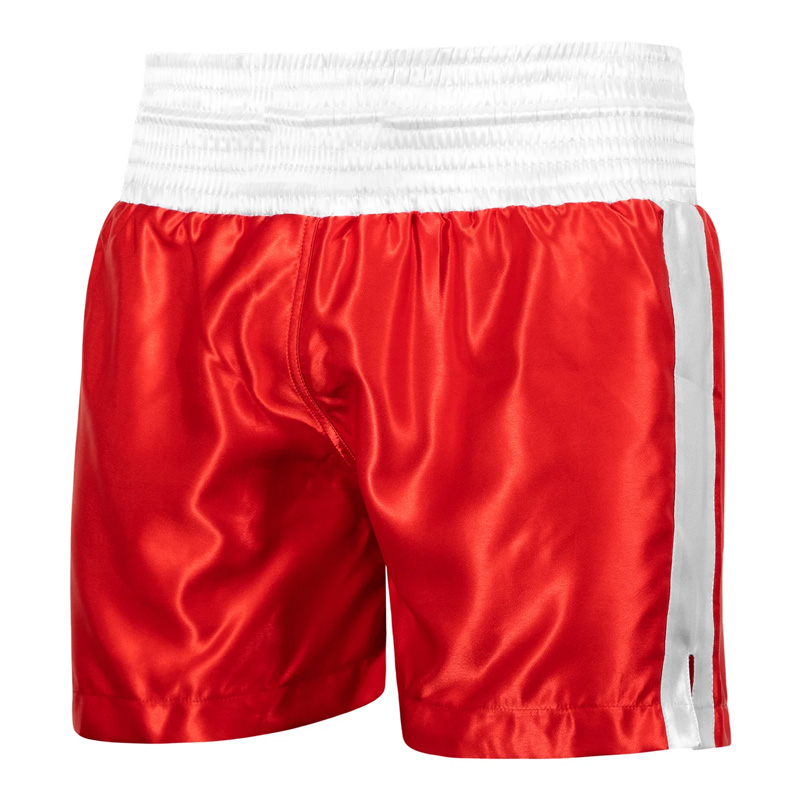 Classic boxing trunks manufactured with smooth satin material and long lasting color retention. Tailored for unrestricted movement with reinforced seams for extended use. Full customization available: color panels, trim styles, fighter names, and sponsor logos.