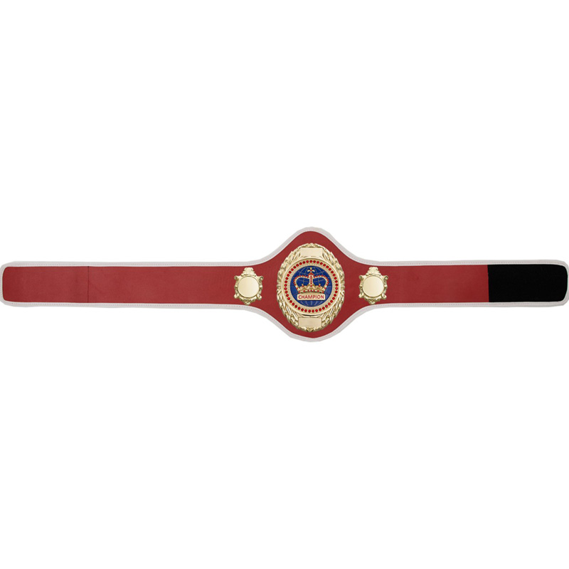 A beautiful championship leather belt, decorated with high quality, solid metal parts. The strap is made from leather outer and inner board, with a fur backing for extra comfort. The belt is available in one size with an adjustable, velcro fastening to fit an approximate waist size of 30” to 46”. The centre design features gem stones around the outer edge and enamel detailing. The leather strap is available in a variety of colours with fabric or leather trim, depending on the colour chosen. Customise your belt with one of our side plate designs in step 3 of the buying process below. Engraving can be added in step 4 of the buying process below, to the top centre plate, bottom centre plate and/or side plates (if opted for).