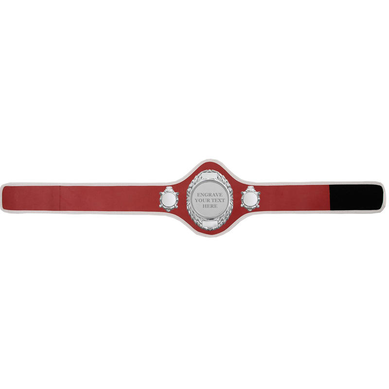 A beautiful championship leather belt, decorated with high quality, solid metal parts. The strap is made from leather outer and inner board, with a fur backing for extra comfort. The belt is available in one size with an adjustable, velcro fastening to fit an approximate waist size of 30” to 46”. The centre design features gem stones around the outer edge and enamel detailing. The leather strap is available in a variety of colours with fabric or leather trim, depending on the colour chosen. Customise your belt with one of our side plate designs in step 3 of the buying process below. Engraving can be added in step 4 of the buying process below, to the top centre plate, bottom centre plate and/or side plates (if opted for).